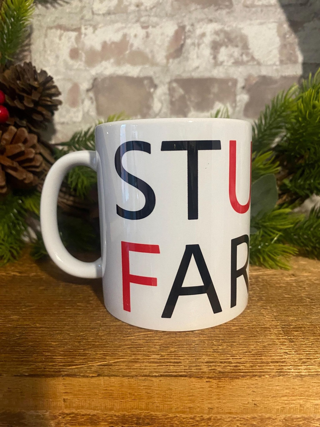 Introducing the Stuck Farmer mug – a brilliantly cheeky twist on a certain political phrase (you know the one 👀).